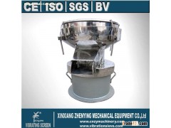 ZY450 vibrating screen filter machine is a kind of small size machine, which is designedwith the features of convenient to move, high efficiency, and low noise, small size, suitable for any granule, powder, and mucilage. For example, total 1200 liters 1.1 ratios spray-paint can be filtered by the machine when using 325 Mesh screen net; The processing quantities of flour can reach 700 kg when the screen net of 30M being used,. It is also well-qualified